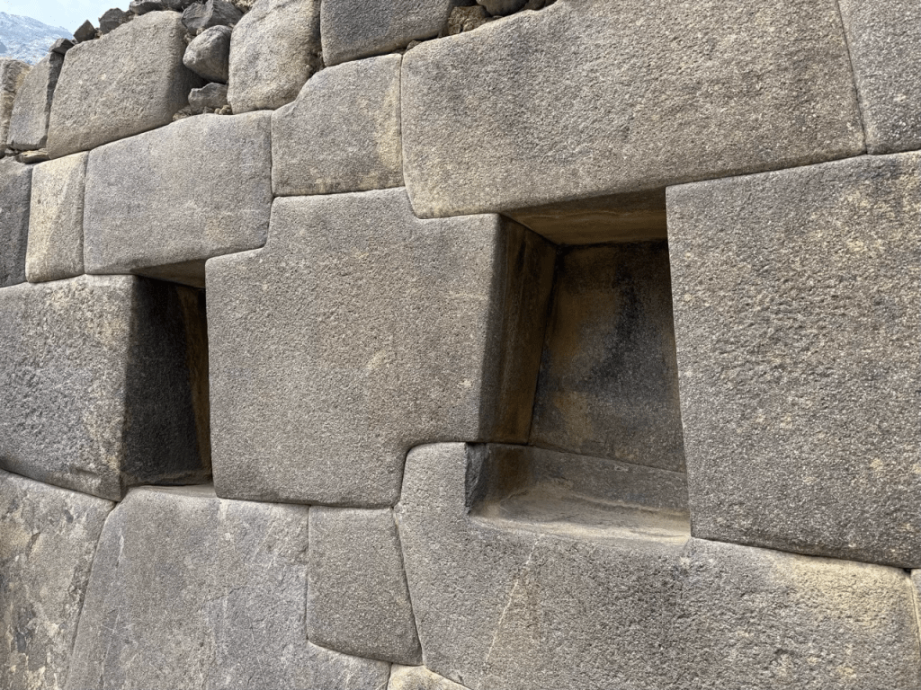 “. . . . The interior surface of the wall was broken by niches and square stone-pegs. The exterior surface was perfectly simple and unadorned. The lower courses, of particularly large ashlars, gave it a look of solidity. The upper courses, diminishing in size towards the top, lent grace and delicacy to the structure. The flowing lines, the symmetrical arrangement of the ashlars, and the gradual graduation of the courses, combined to produce a wonderful effect, softer and more pleasing than that of the marble temples of the Old World. Owing to the absence of mortar, there were no ugly spaces between the rocks. They might have grown together. On account of the beauty of the white granite this structure surpassed in attractiveness the best Inca walls in Cuzco, which had caused visitors to marvel for four centuries. It seemed like an unbelievable dream. Dimly, I began to realize that this wall and its adjoining semicircular temple over the cave were as fine as the finest stonework in the world.”3