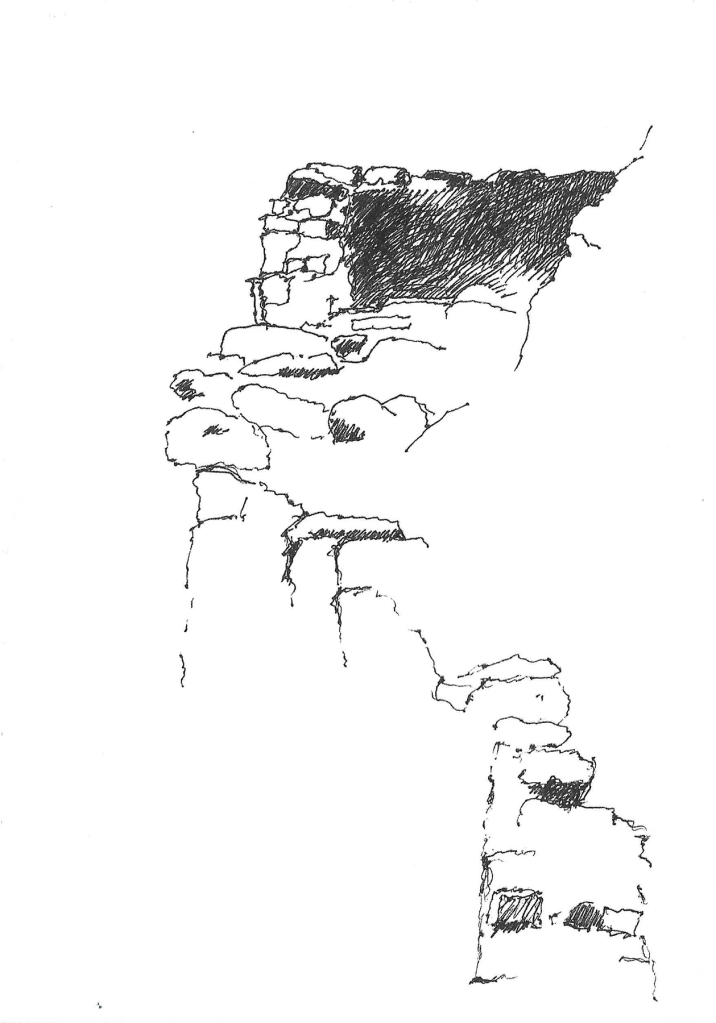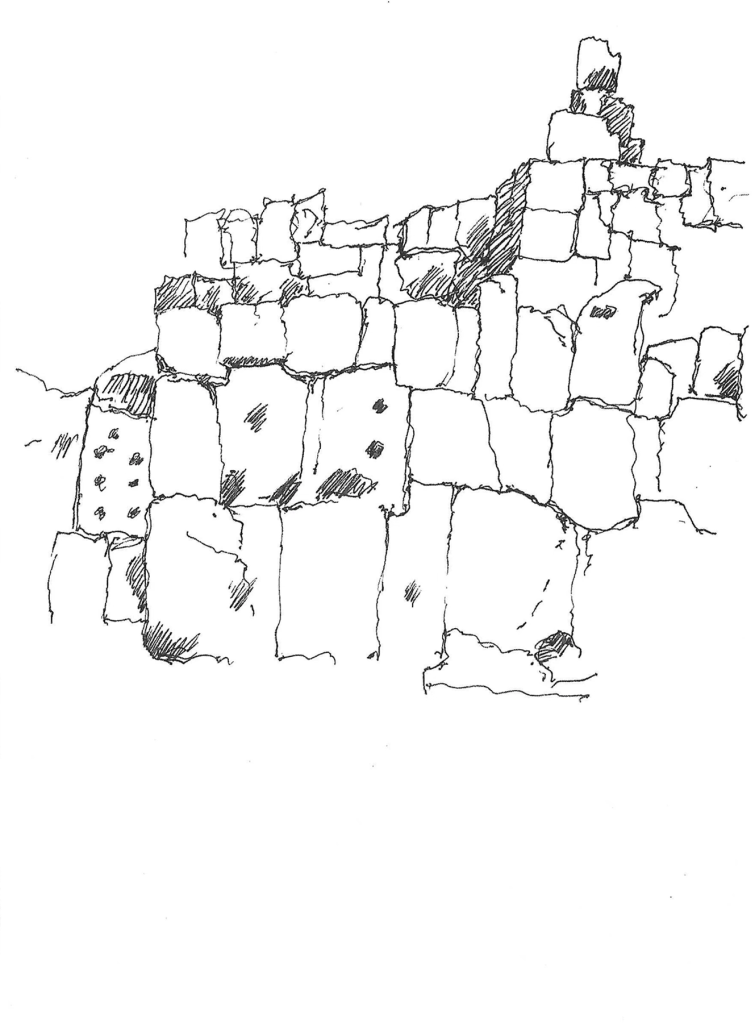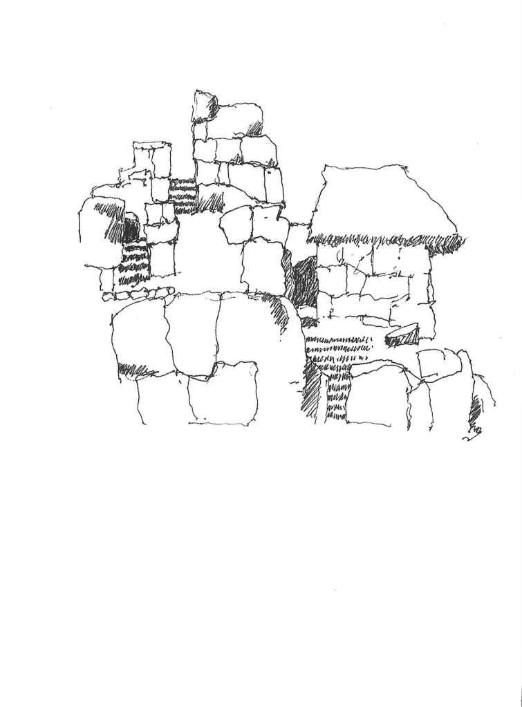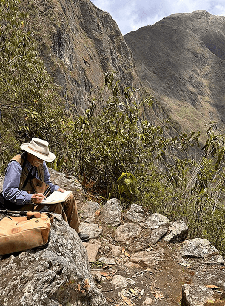 The drawing portfolio included below is in the exact order in which they were done, on site, “en plein air” in each case. They begin with the first and second days at Machu Picchu, and include my last drawing there on the high path leading to the Inca Bridge. The following ones are all at the Temple of the Sun in Cusco containing the original Incan walls with a museum built over top. The last two are on the lower plain with the Wall of the Giants, constructed with many 200 to 300 ton stones, followed by one last Grain Storage Shed, one of my fondest memories.
