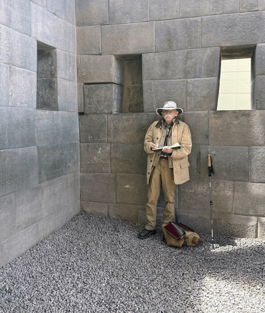 “The Artist Drawing at the original Qorikancha site in Cusco”